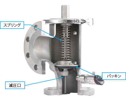 バルブ一次側のエアーを抜きたい場合は、減圧口(3/8Rc)より真空ポンプで吸い上げることもできます。