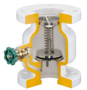 精密機器やハイテク製品の製造工場などでは、洗浄工程で純水・超純水を大量に使用します。純水・超純水は不純物をほとんど含まないものでなければならないため、それらを扱うラインでは、他のラインからの混入、逆流、漏水、設備そのものからの異物混入を防ぐことが品質管理の要となります。そのため、純水を扱うラインで使用するチャッキバルブは、本体やシートパッキンの材質、バイパス弁の有無、脱脂処理/完全禁油処理など、現場によってさまざまな要素に対応できるものを選択することが大切です。
